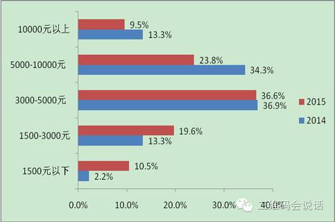 一、掃碼支付以小額便民支付用途為主。2015年,有48.7%的用戶通過掃碼支付方式單筆支付金額在100-500元,32.8%的用戶單筆支付金額在100元以下,比2014年高出20.2個百分點,有10%的用戶單筆支付金額在500-1000元,8.5%的用戶單筆支付金額在1000元以上。(此為商戶數據,小額多量。個人用戶交易量更大。)