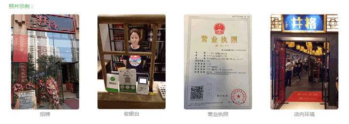 提供四張照片,分別為門店(含招牌)、收銀臺(含微信支付標準物料)、店內環境及店內拍攝的營業執照。詳細標準見下文“照片要求”