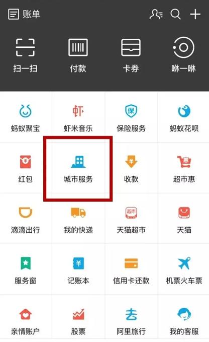 第一步,打開支付寶找“城市服務(wù)”,打開窗戶。